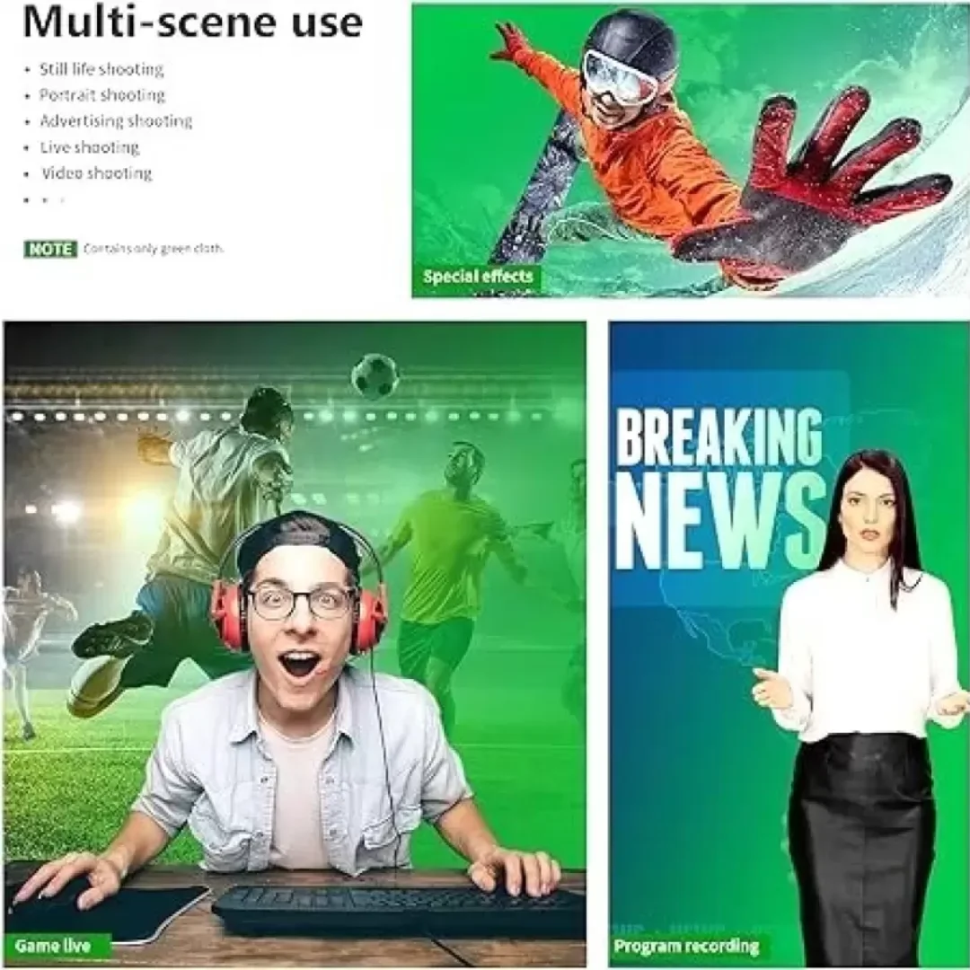 Crafted from high-quality materials, the green screen offers a versatile background for your photos, allowing you to easily remove and replace the background in post-processing. Whether you're shooting portraits, product images, or special effects, the vibrant green color ensures excellent chroma keying results.