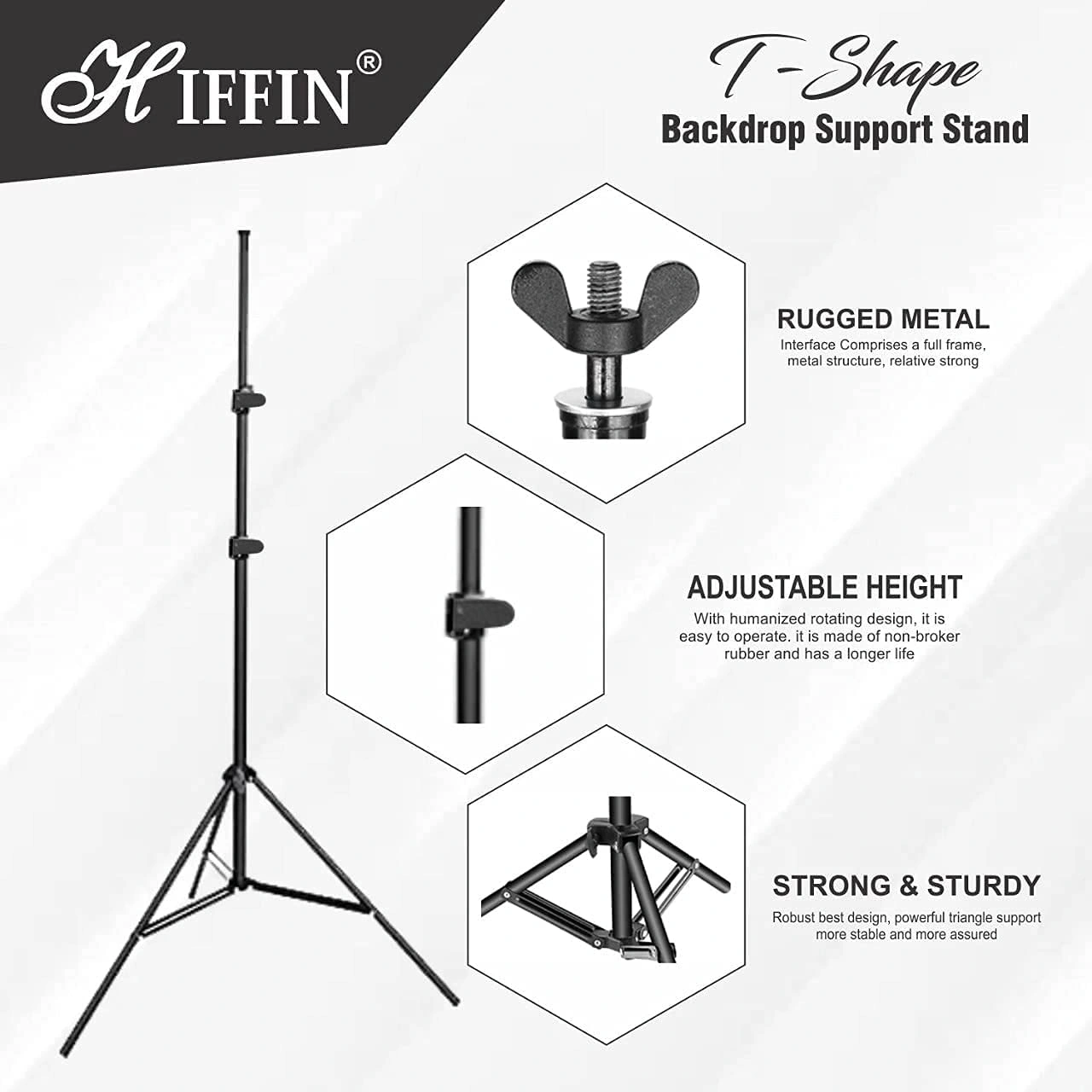 【Easy To Install & Use】- T-shaped background stand is easy to install and use. Step for use 1. Align the two crossbars with the interface and engage 2. Align the aligned crossbars with the screws of the background bracket. 3. Install and tighten the nuts to secure the crossbar and the tripod. 4. Adjust the bracket to the desired what you need height, then the installation can be completed. By the way, you can shoot with our background backdrop.