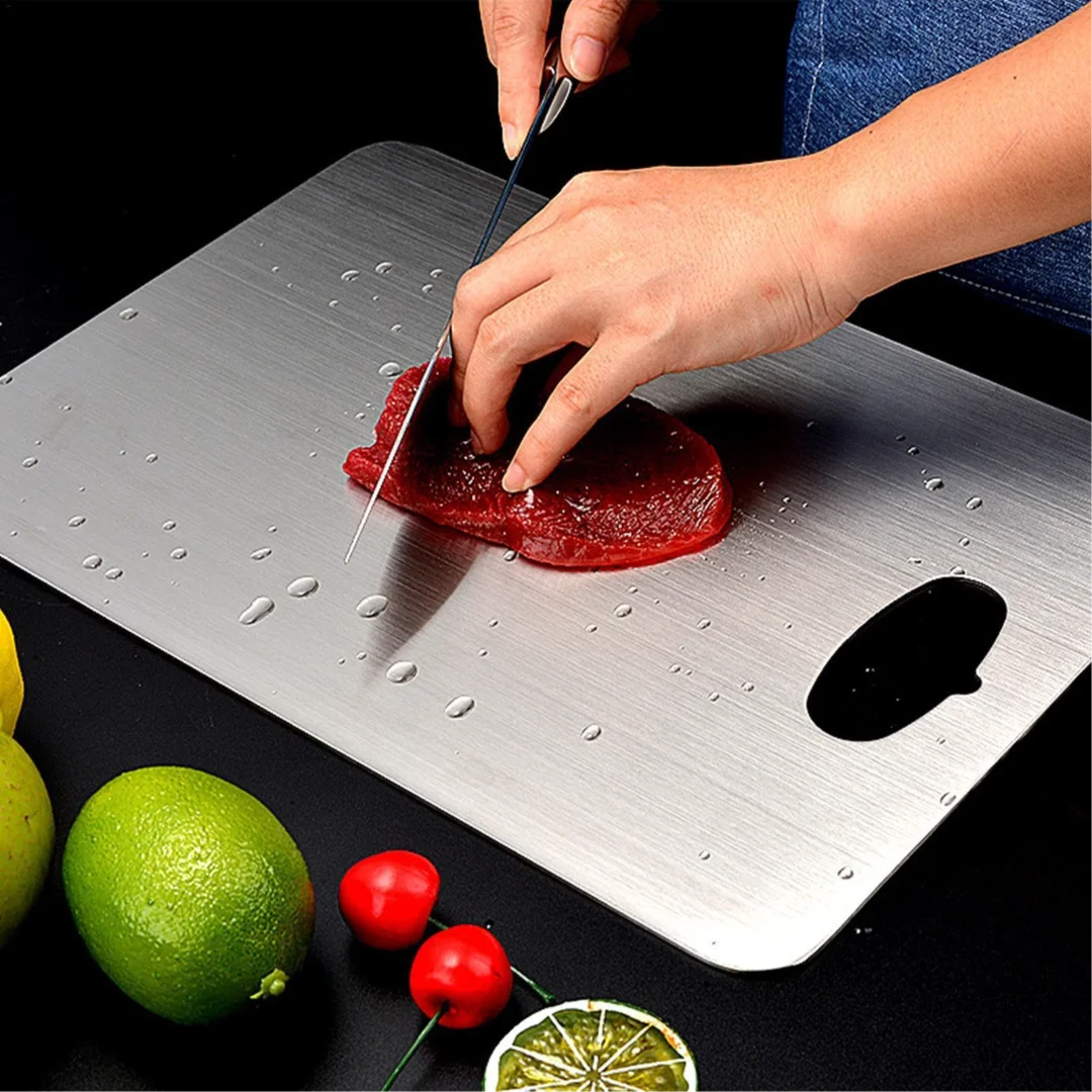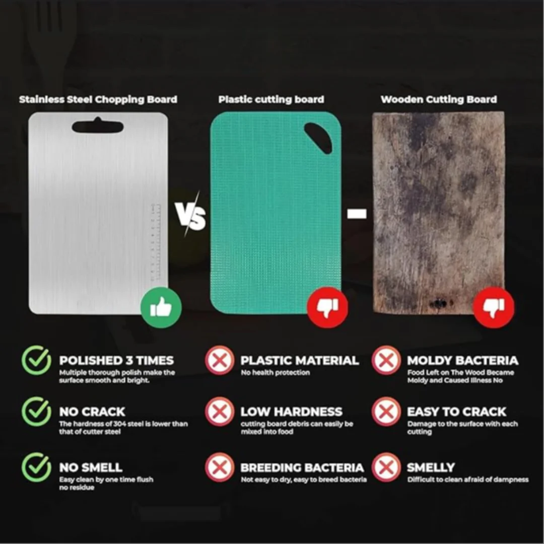 के तपाईँ अझै पनि प्लास्टिक वा काठको चपिंग बोर्ड प्रयोग गर्दै हुनुहुन्छ? अब चिन्ता छोड्नुस्! हामी ल्याएका छौँ 𝟏𝟎𝟎% 𝐒𝐭𝐚𝐢𝐧𝐥𝐞𝐬𝐬 𝐒𝐭𝐞𝐞𝐥 𝐂𝐡𝐨𝐩𝐩𝐢𝐧𝐠 𝐁𝐨𝐚𝐫𝐝 स्वस्थ्य, दीगो र अत्याधुनिक विकल्प।
